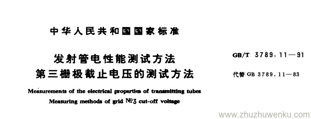 GB/T 3789.11-1991 pdf下载 发射管电性能测试方法 第三栅极截止电压的测试方法