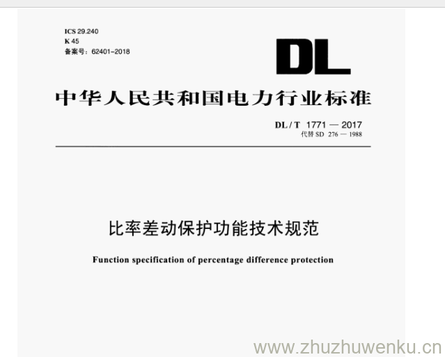 DL/T 1771-2017 pdf下载 比率差动保护功能技术规范。Function specification of percentage difference protection.
