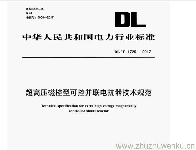 DL/T 1725-2017 pdf下载 超高压磁控型可控并联电抗器技术规范。Technical specification for extra high voltage magnetically controlled shunt reactor.