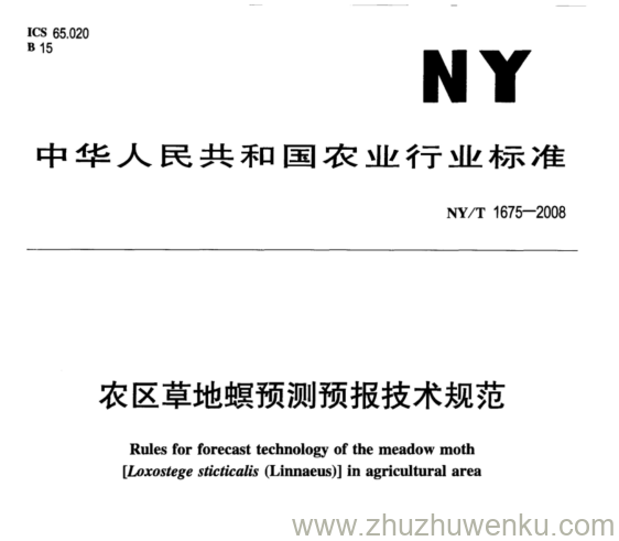 NY/T 1675-2008 pdf下载 农区草地螟预测预报技术规范。 Rules for forecast technology of the meadow moth [Loxostege sticticalis (Linnaeus)] in agricultural area .