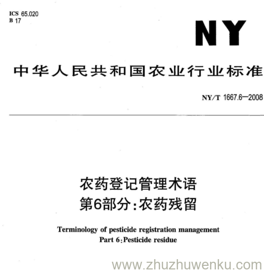 NY/T 1667.6-2008 pdf下载 农药登记管理术语 第6部分:农药残留