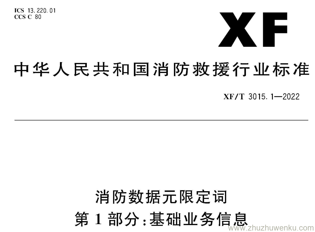 XF/T 3015.1-2022 pdf下载 消防数据元限定词 第1部分:基础业务信息