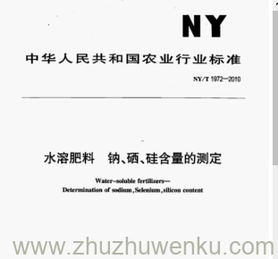 NY/T 1972-2010 pdf下载 水溶肥料钠、 硒、硅含量的测定。 Water soluble fertilizers- Determination of sodium, Selenium silicon content .