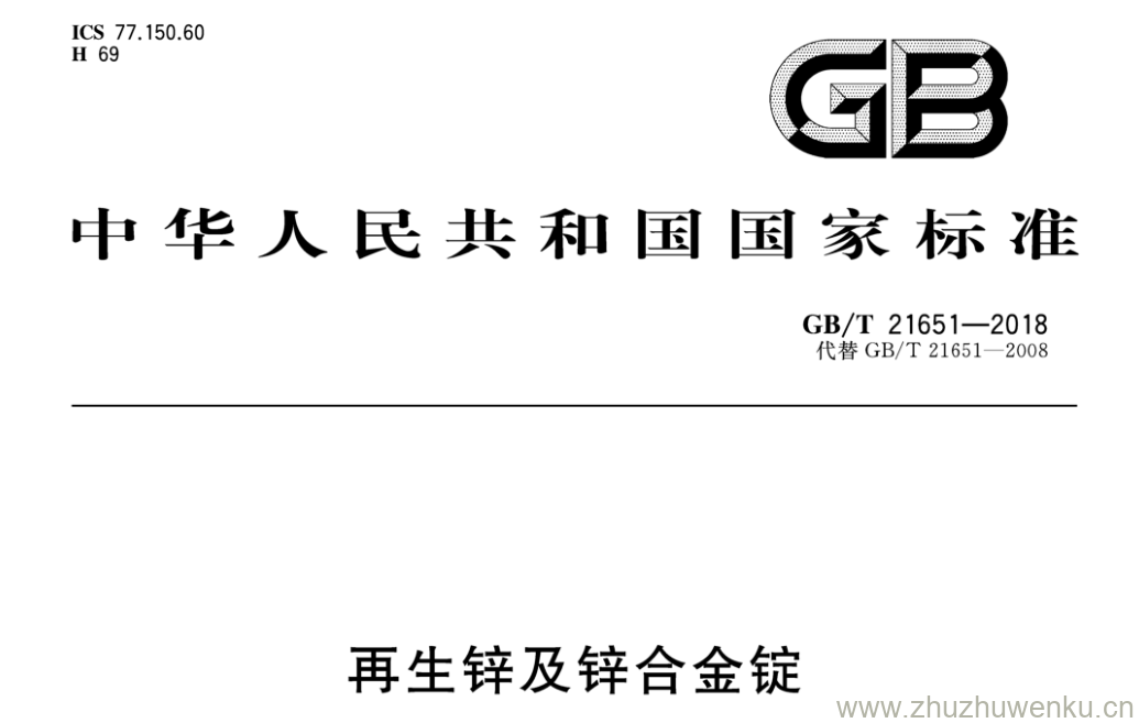 GB/T 21651-2018 pdf下载 再生锌及锌合金锭