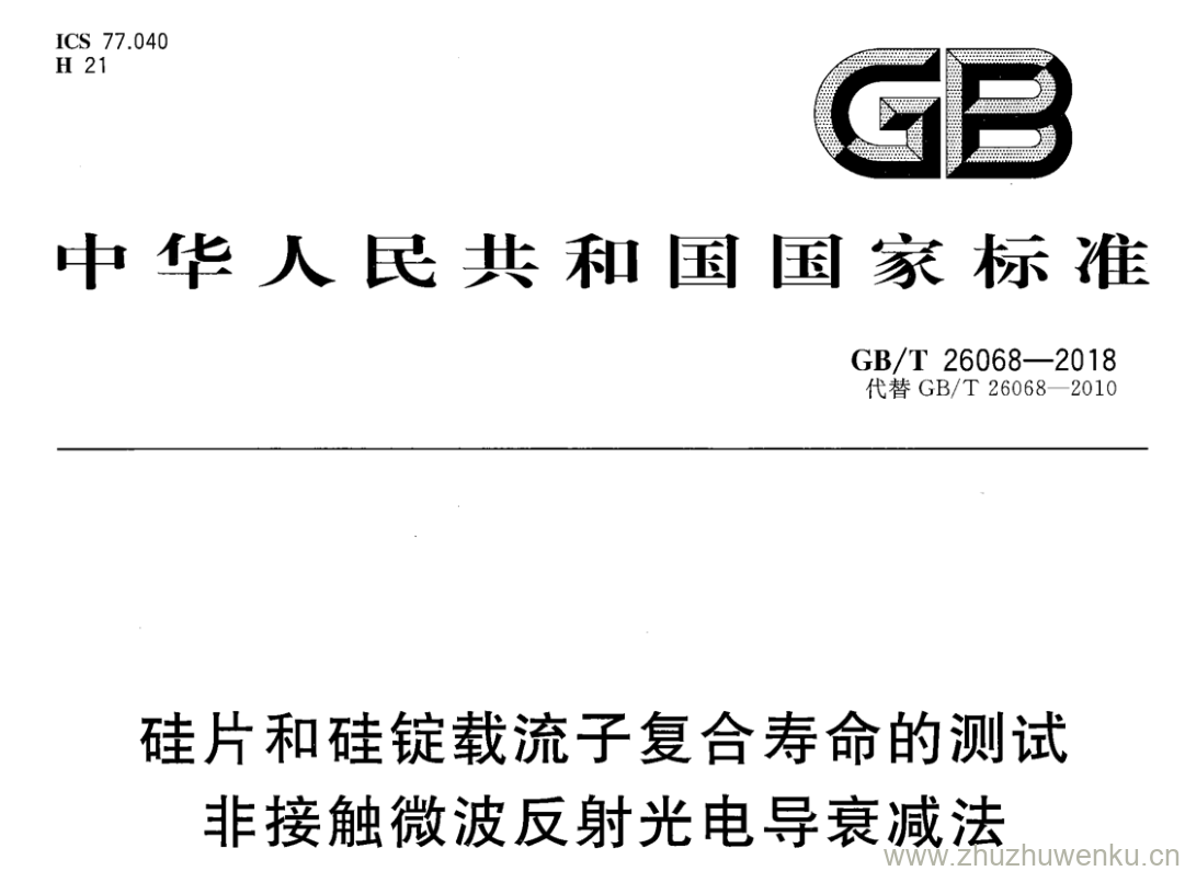 GB/T 26068-2018 pdf下载 石圭片和娃链载流子复合寿命的测试非接触微波反射光电导衰减法