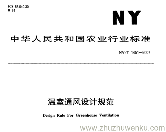 NY 1451-2007 pdf下载 温室通风设计规范。 Design Rule For Greenhouse Ventilation .