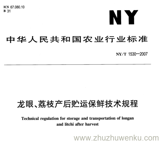 NY 1530-2007 pdf下载 龙眼、荔枝产后贮运保鲜技术规程。 Technical regulation for storage and transportation of longan and litchi after harvest .