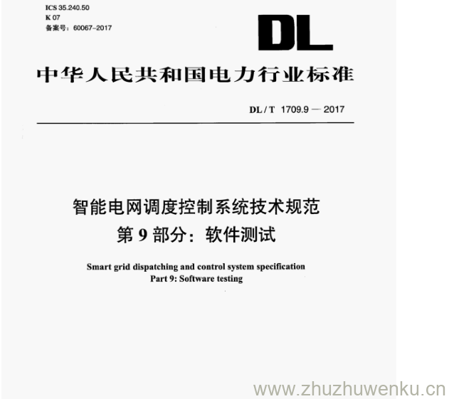 DL/T 1709.9-2017 pdf下载 智能电网调度控制系统技术规范 第9部分:软件测试。Smart grid dispatching and control system specification Part 9: Software testing.