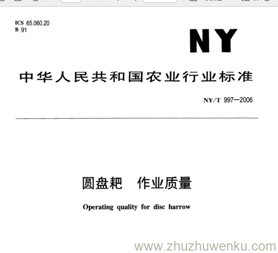 NY/T 997-2006 pdf下载 圆盘耙 作业质量 。Operating quality for disc harrow .