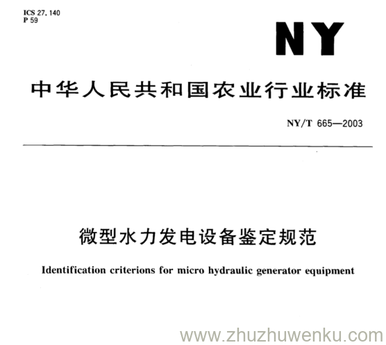 NY/T 665-2003 pdf下载 微型水力发电设备鉴定规范