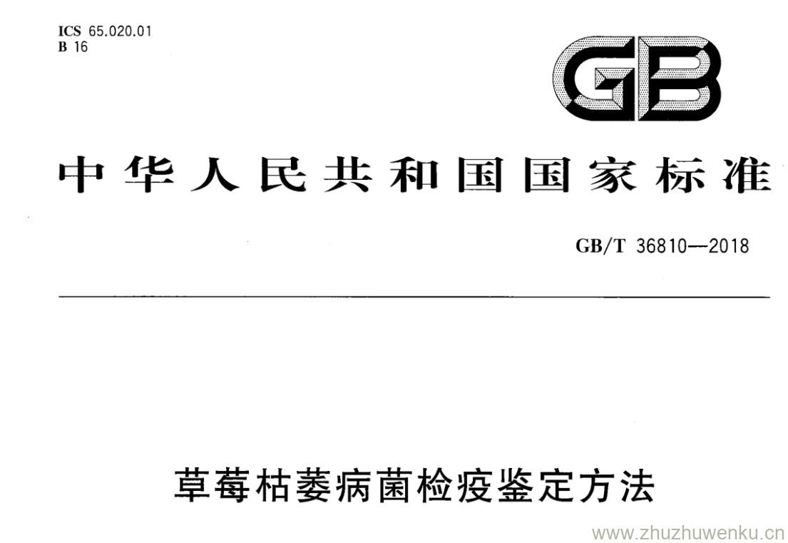 GB/T 36810-2018 pdf下载 草莓枯萎病菌检疫鉴定方法