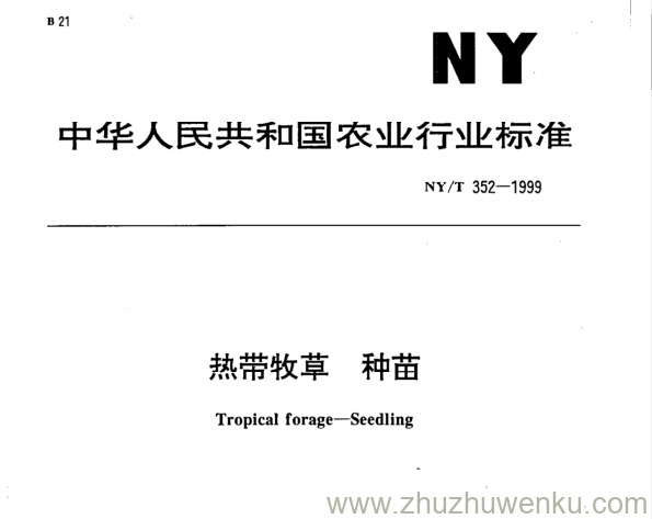 NY/T 352-1999 pdf下载 热带牧草 种苗 。Tropical forage- Seedling .