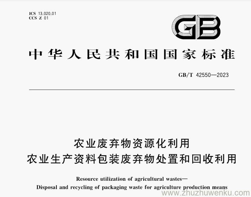 GB/T 42550-2023 pdf下载 农业废弃物资源化利用 农业生产资料包装废弃物处置和回收利用.