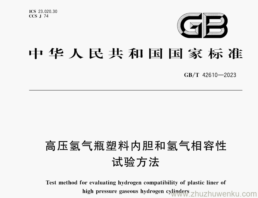 GB/T 42610-2023 pdf下载 高压氢气瓶塑料内胆和氢气相容性 试验方法.Test method for evaluating hydrogen compatibility of plastic liner of
