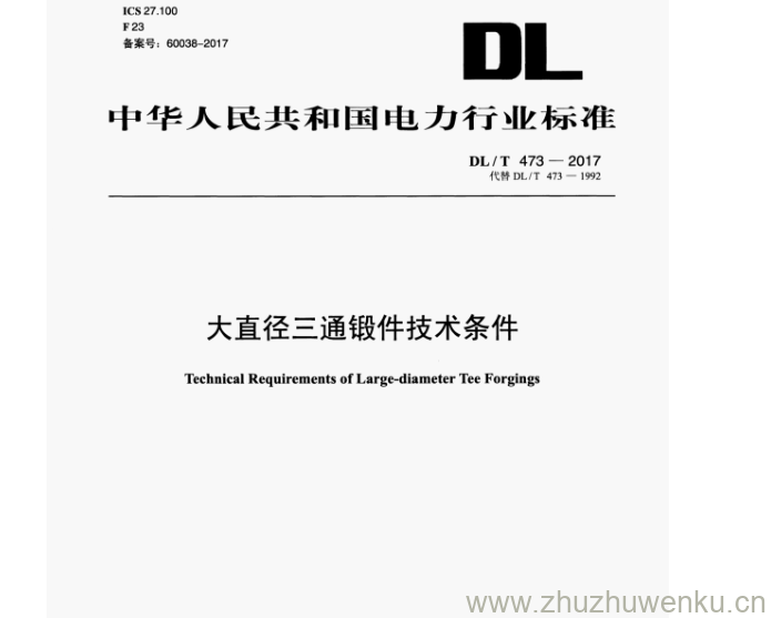 DL/T 473-2017 pdf下载 大直径三通锻件技术条件。Technical Requirements of Large-diameter Tee Forgings.