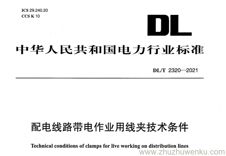 DL/T 2320-2021 pdf下载 配电线路带电作业用线夹技术条件。Technical conditions of clamps for live working on distribution lines.