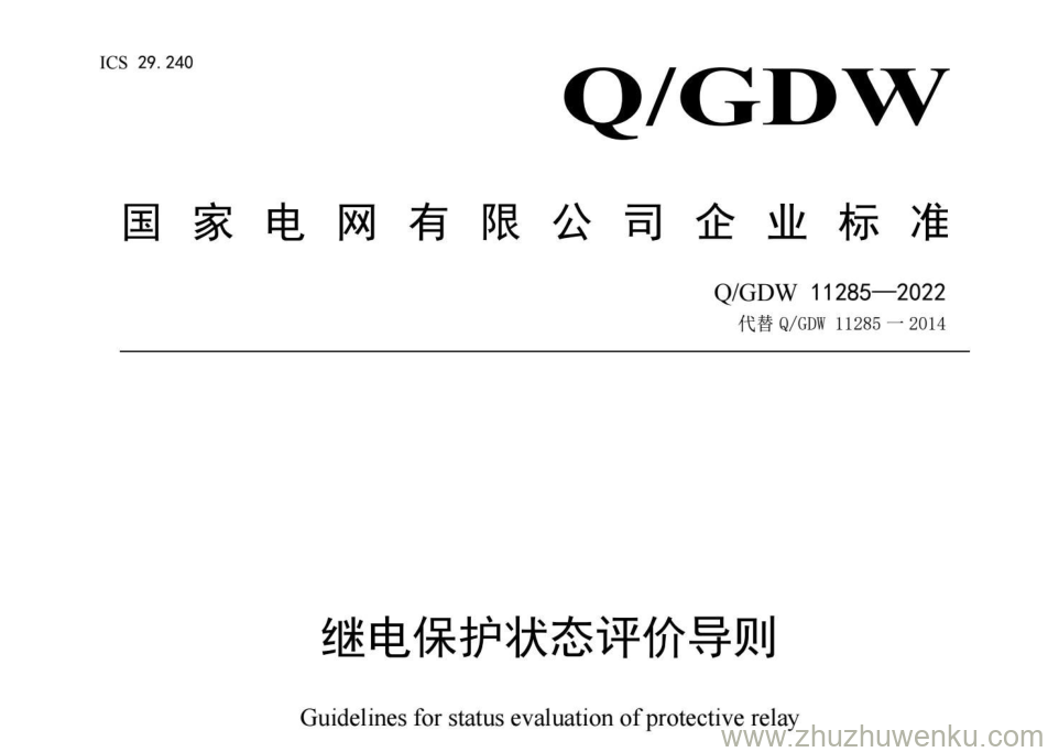 Q/GDW 11285-2022 pdf下载 继电保护状态评价导则。Guidelines for status evaluation of protective relay.