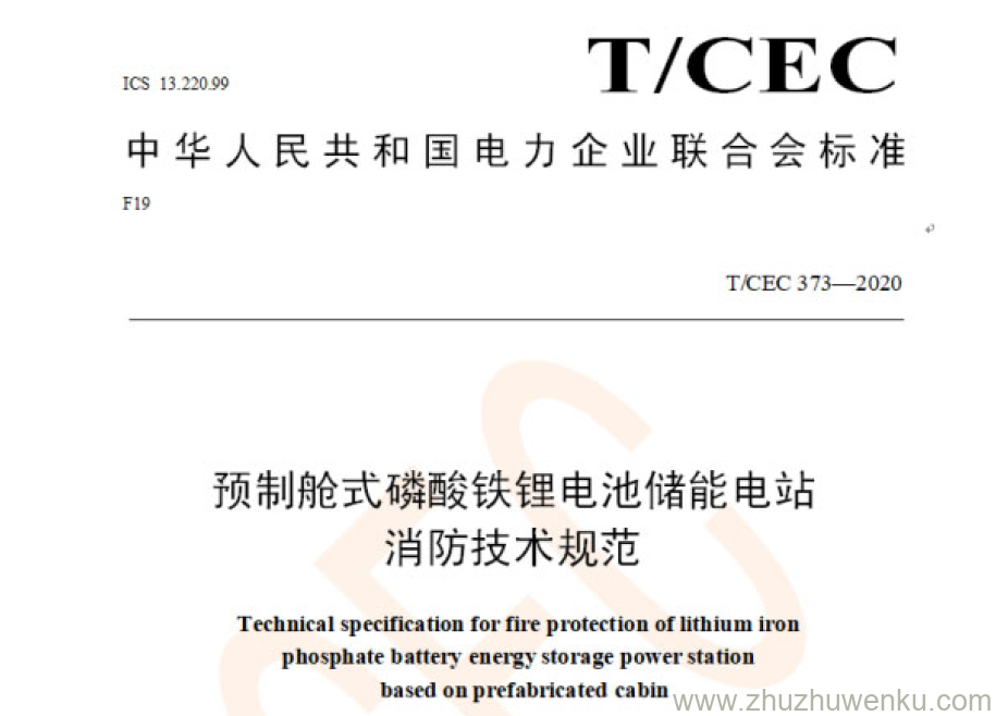 T/CEC 373-2020 预制舱式磷酸铁锂电池储能电站消防技术规范.Technical specification for fire protection of lithium iron phosphate battery energy storage power station