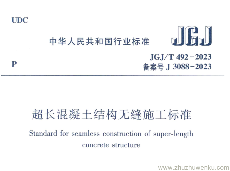 JGJ/T 492-2023 pdf下载 超长混凝土结构无缝施工标准。Standard for seamless construction of super-length