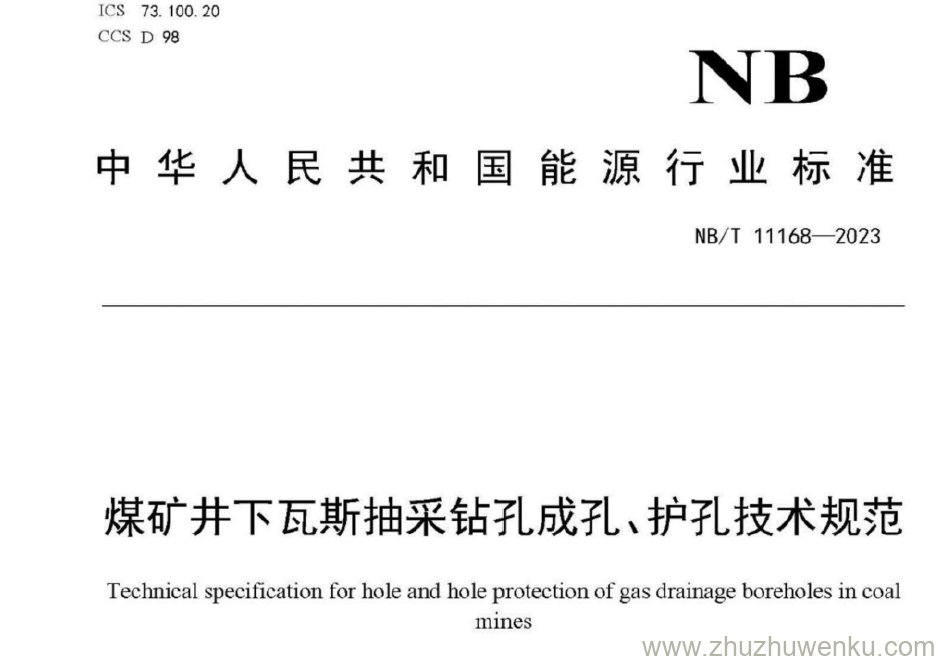NB/T 11168-2023 pdf下载 煤矿井下瓦斯抽采钻孔成孔、护孔技术规范。Technical specification for hole and hole protection of gas drainage boreholes in coal