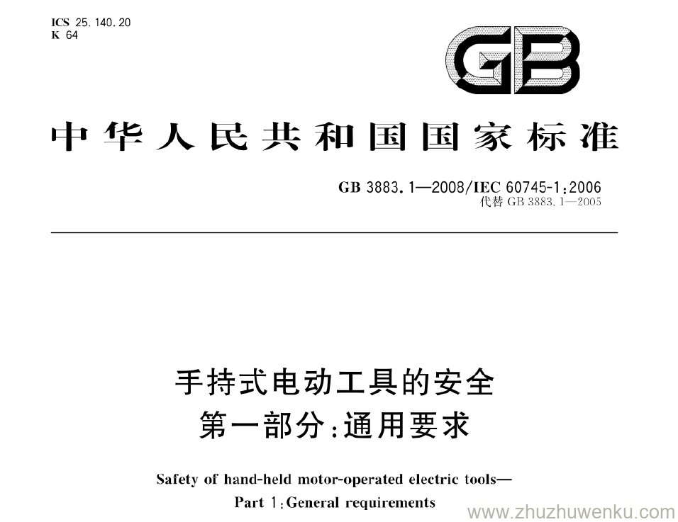 GB 3883.1-2008 手持式电动工具的安全 第一部分:通用要求。Safety of hand-held motor-operated electric tools-Part 1:General requirements.