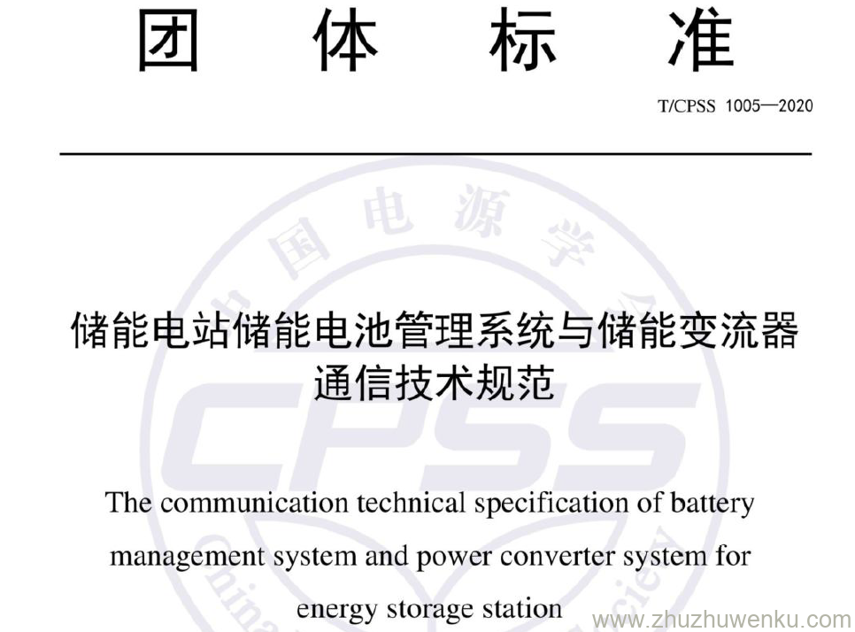 T/CPSS 1005-2020 pdf下载 储能电站储能电池管理系统与储能变流器通信技术规范。The communication technical specification of battery
