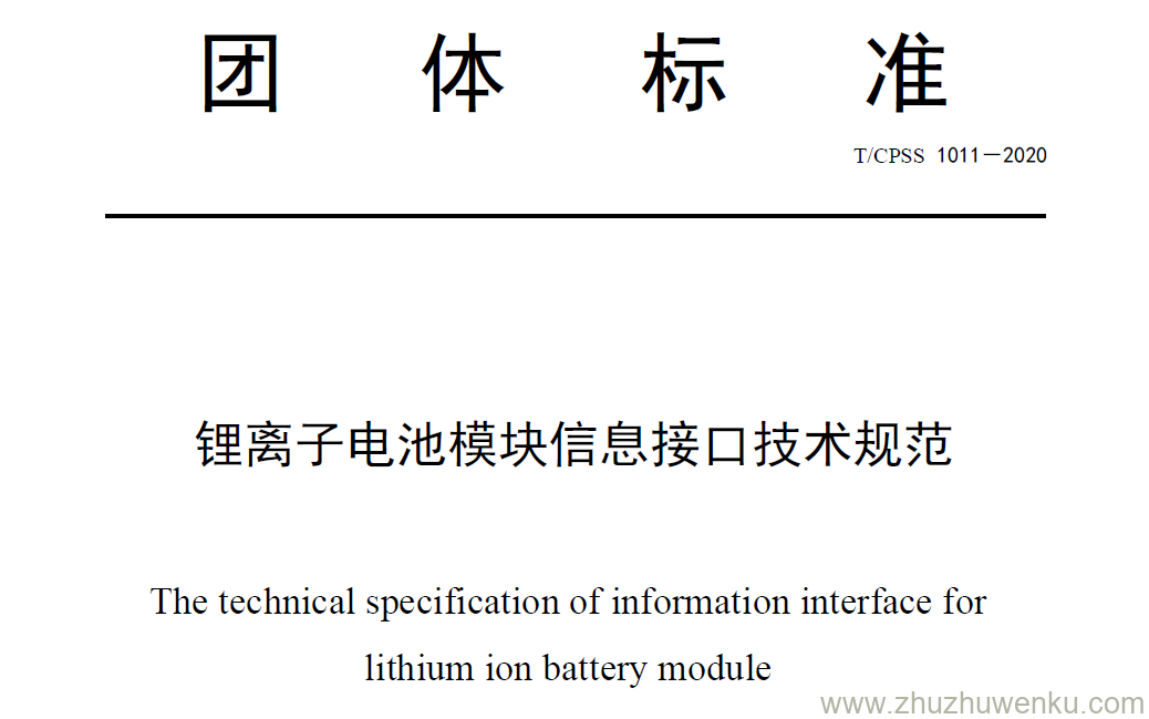 T/CPSS 1011-2020 pdf下载 锂离子电池模块信息接口技术规范。The technical specification of information interface for
