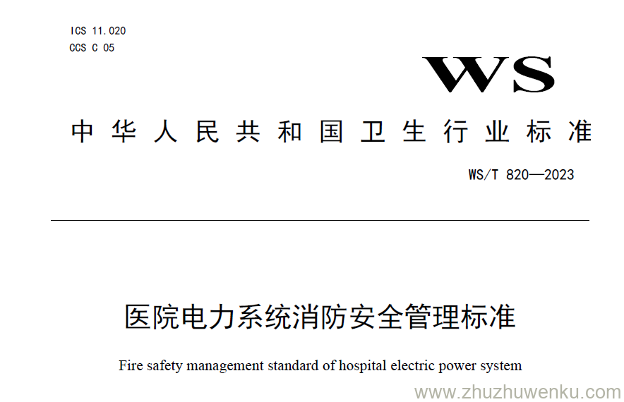 WS/T 820-2023 pdf下载 医院电力系统消防安全管理标准。Fire safety management standard of hospital electric power system.