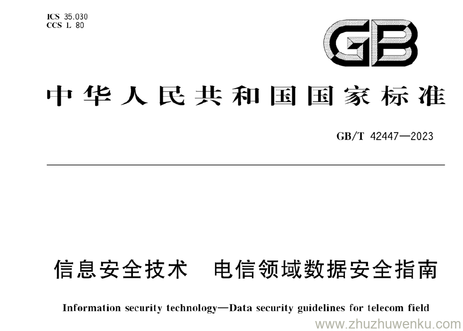 GB/T 42447-2023 pdf下载 信息安全技术 电信领域数据安全指南。Information security technology-Data security guidelines for telecom field.