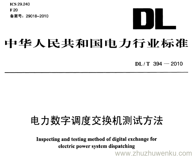DL/T 394-2010 pdf下载 电力数字调度交换机测试方法。Inspecting and testing method of digital exchange for electric power system dispatching.