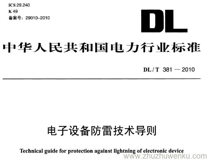 DL/T 381-2010 pdf下载 电子设备防雷技术导则。Technical guide for protection against lightning of electronic device.