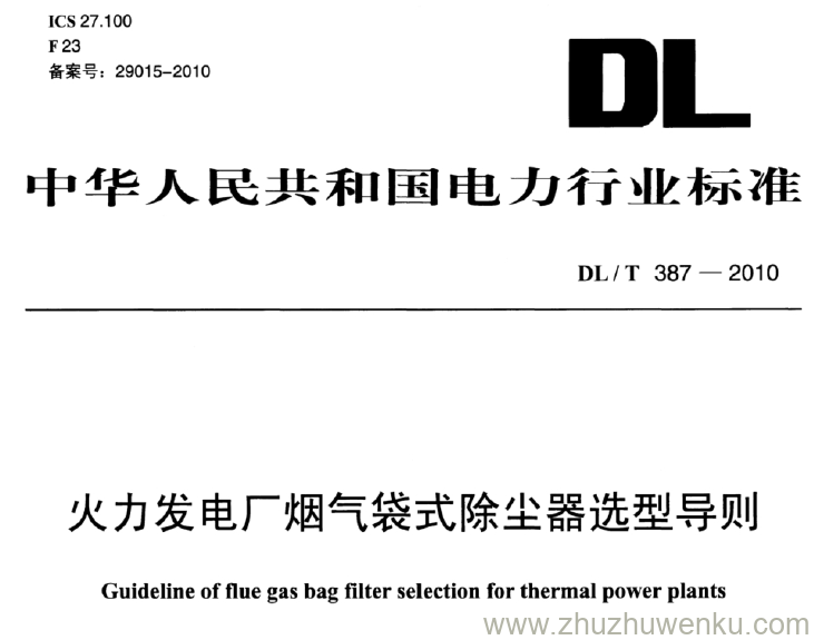 DL/T 387-2010 pdf下载 火力发电厂烟气袋式除尘器选型导则。Guideline of flue gas bag filter selection for thermal power plants.