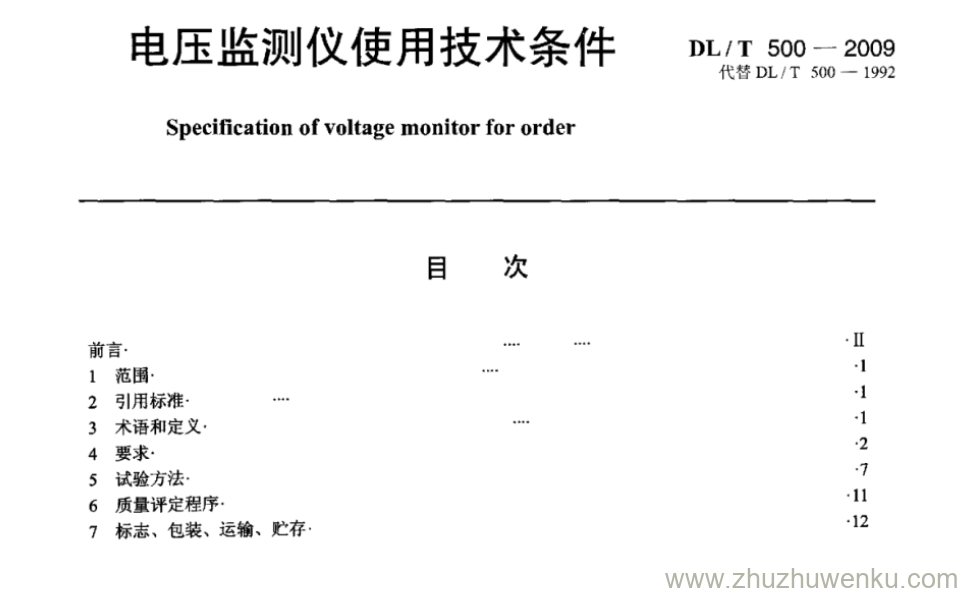 DL/T 500-2009 pdf下载 电压监测仪使用技术条件。Specification of voltage monitor for order.DL/T 500-2009代替DL/T 500-1992。