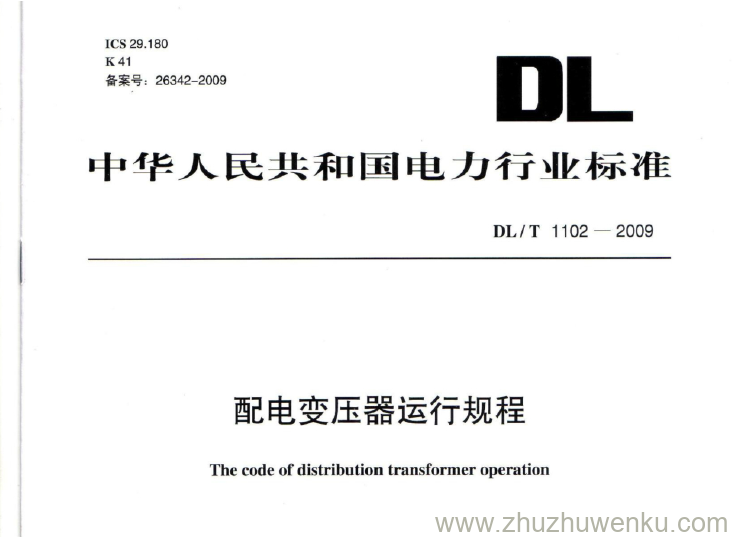 DL/T 1102-2009 pdf下载 配电变压器运行规程。The code of distribution transformer operation.