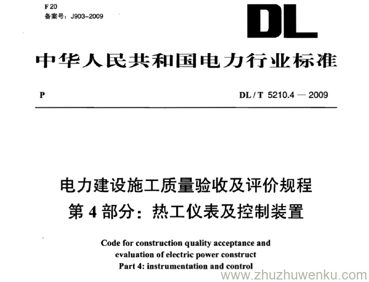 DL/T 5210.4-2009 电力建设施工质量验收及评价规程第4部分:热工仪表及控制装置。