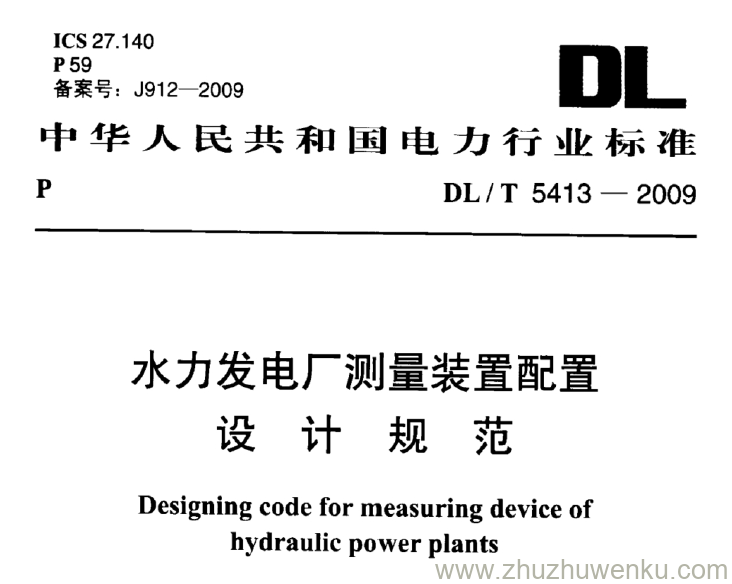 DL/T 5413-2009 pdf下载 水力发电厂测量装置配置 设计规范。 Designing code for measuring device of hydraulic power plants.