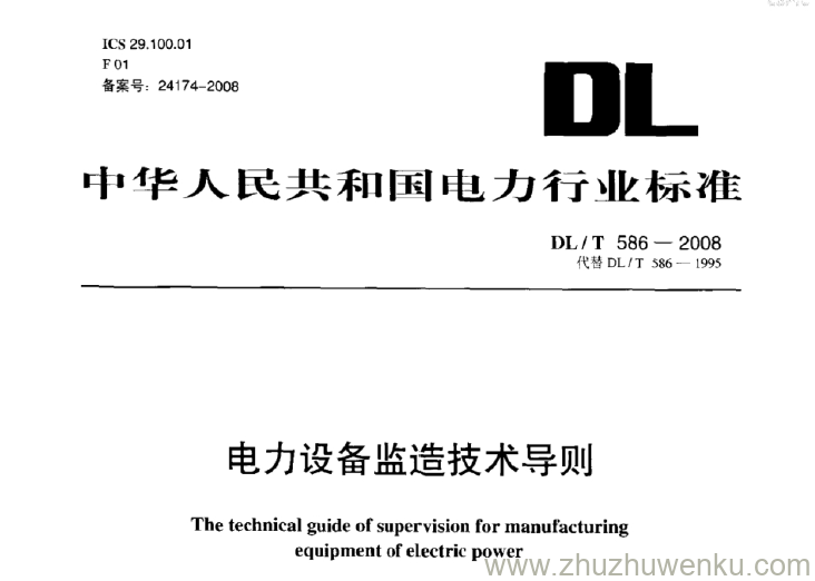 DL/T 586-2008 pdf下载 电力设备监造技术导则。The technical guide of supervision for manufacturing equipment of electric power.DL/T 586-2008代替DL/T 586-1995。