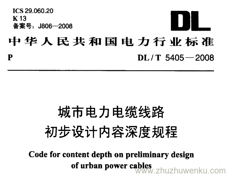 本标准DL/T 5405-2008规定了城市电力电缆线路工程初步设计内容深度的要求。