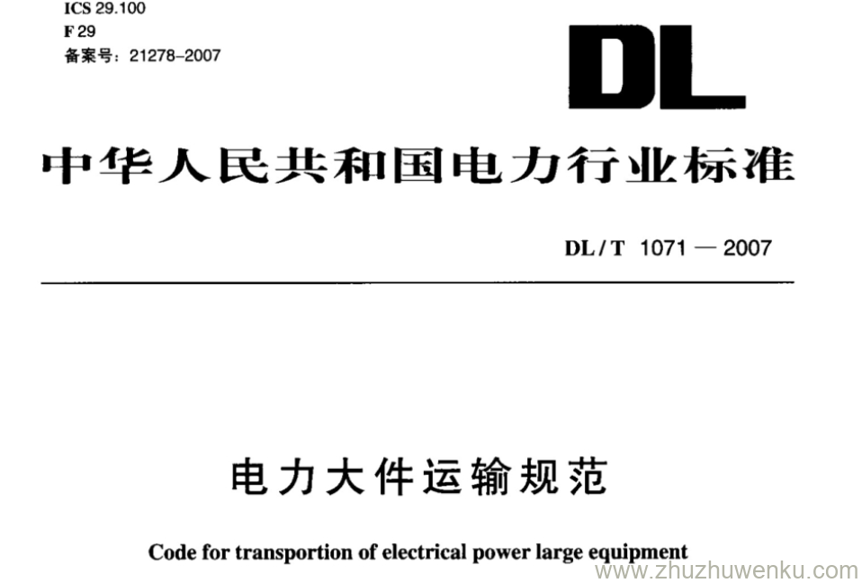 DL/T 1071-2007 pdf下载 电力大件运输规范。Code for transportion of electrical power large equipment