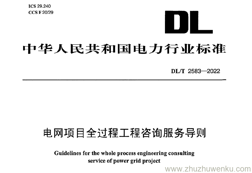 DL/T 2583-2022 pdf下载 电网项目全过程工程咨询服务导则。Guidelines for the whole process engineering consulting service of power grid project.