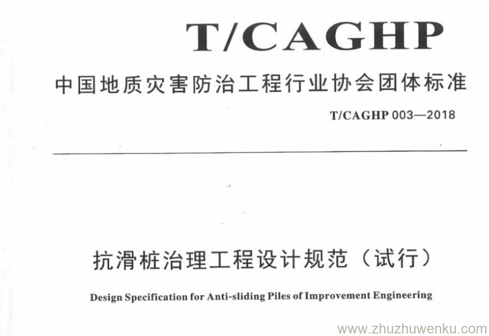 T/CAGHP 003-2018 pdf下载 抗滑桩治理工程设计规范(试行)。Design Specification for Anti-sliding Piles of Improvement Engineering.