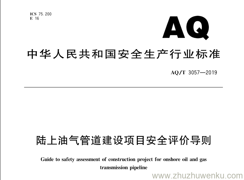 AQ/T 3057-2019 pdf下载 陆上油气管道建设项目安全评价导则。Guide to safety assessment of construction project for onshore oil and gas transmission pipeline.