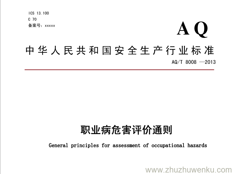 AQ/T 8008-2013 pdf下载 职业病危害评价通则。General principles for assessment of occupational hazards.