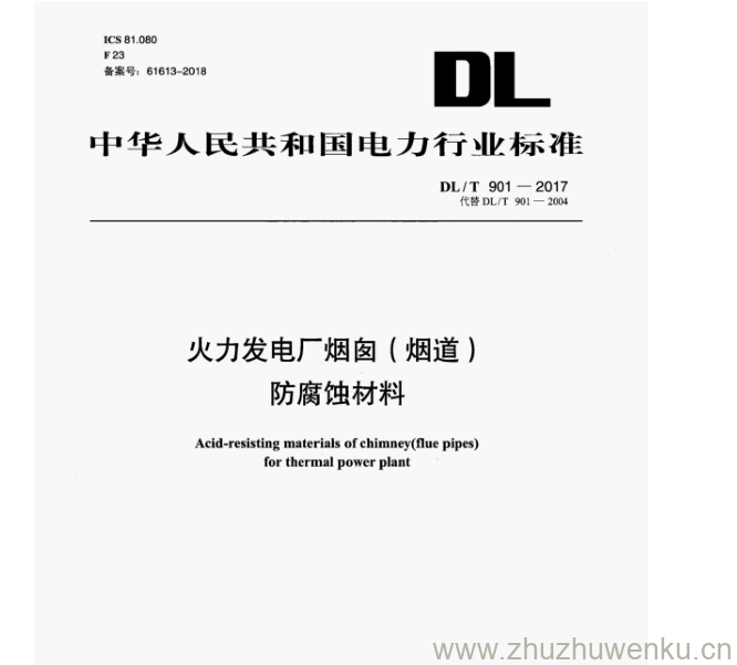 DL/T 901-2017 pdf下载 火力发电厂烟囱(烟道) 防腐蚀材料。Acid-resisting materials ofchimney(flue pipes) for thermal power plant.
