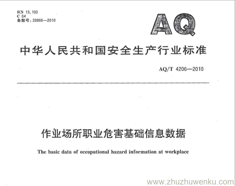 AQ/T 4206-2010 pdf下载 作业场所职业危害基础信息数据。The basic data of oceupational hazard information at workplace.