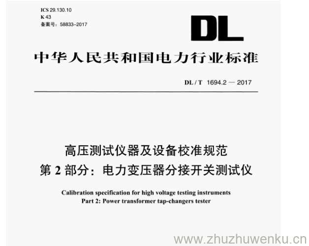 DL/T 1694.2-2017 pdf下载 高压测试仪器及设备校准规范 第2部分:电力变压器分接开关测试仪。Calibration specification for high voltage testing instruments Part 2: Power transformer tap-changers tester.
