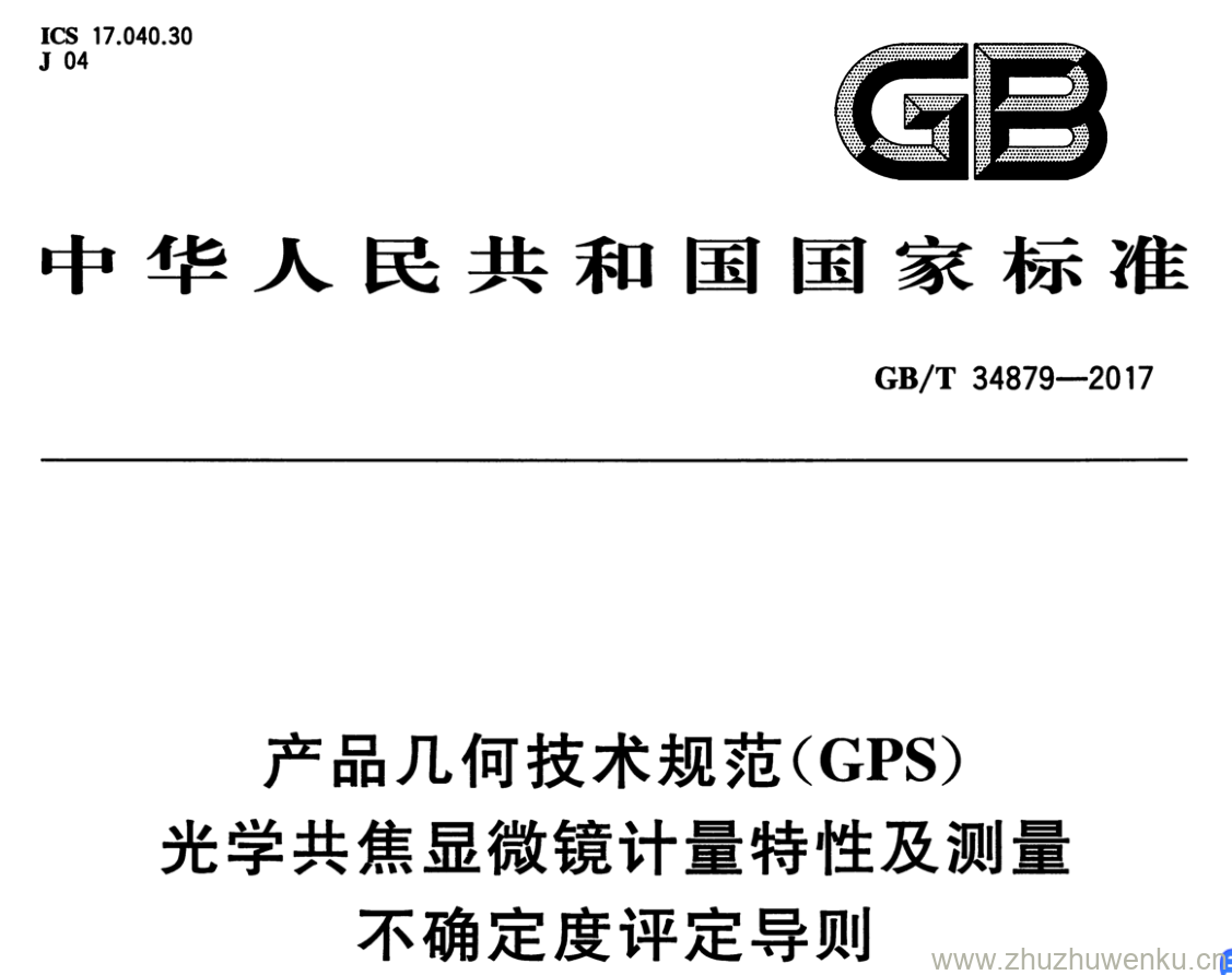 GB/T 34879-2017 pdf下载 产品几何技术规范( GPS ) 光学共焦显微镜计量特性及测量 不确定度评定导则