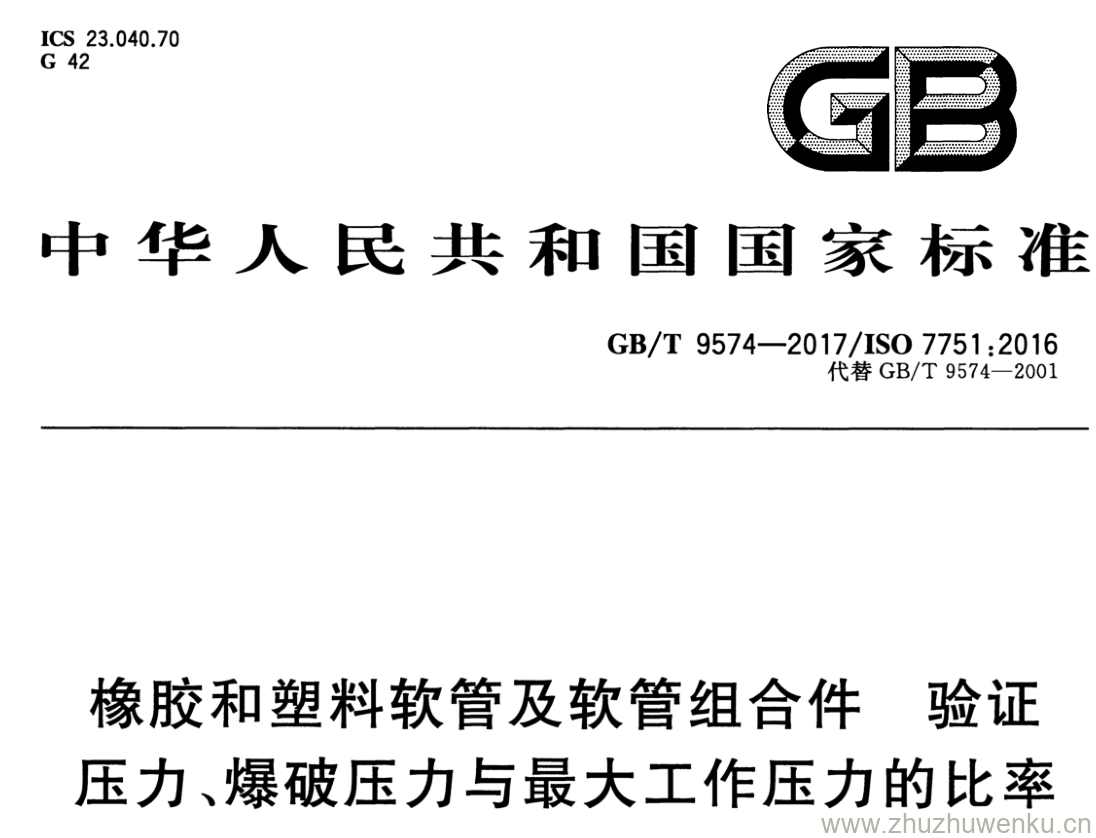 GB/T 9574-2017 pdf下载 橡胶和塑料软管及软管组合件 验证压力、爆破压力与最大工作压力的比率