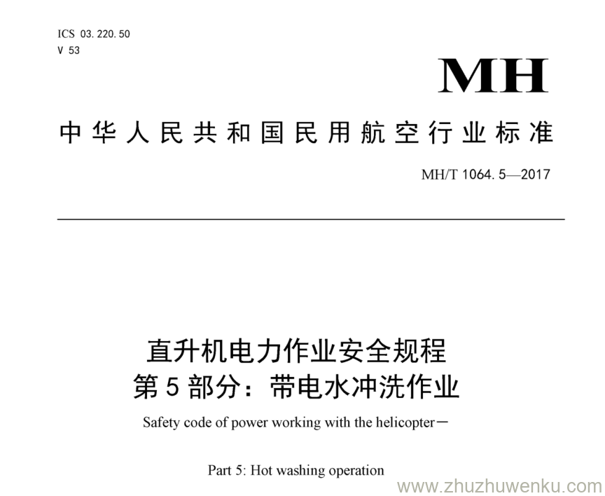 MH/T 1064.5-2017 pdf下载 直升机电力作业安全规程 第5部分:带电水冲洗作业。Safety code of power working with the helicopter — Part 5: Hot washing operation.