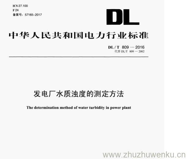 DL/T 809-2016 pdf下载 发电厂水质浊度的测定方法。The determination method of water turbidity in power plant.